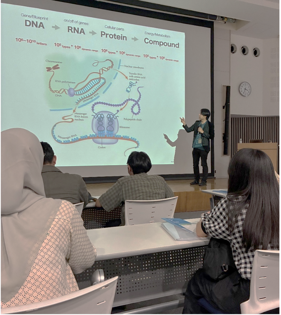 新幹線で鶴岡へ移動し、サイエンスパークで慶應大学 先端生命科学研究所 荒川和晴教授から素材革命を期待される人工の蜘蛛の糸について、構造や応用分野、社会実装の課題まで幅広くお話をうかがいました。