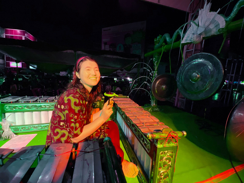 ジョクジャカルタの王宮での演奏会にジャワの正装で参加
