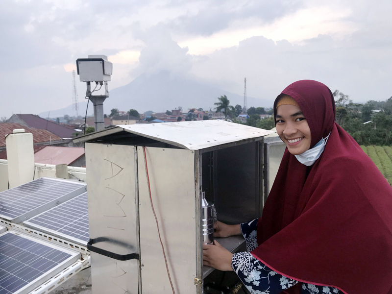 スマトラ島シナブン山近くでの大気汚染物質の測定